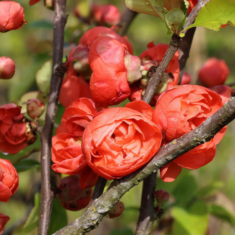 Pigwowiec okazały Mango Storm (Chaenomeles speciosa 'Mango Storm') to wyjątkowo efektowny pigwowiec o formie prowadzonej na pniu, który łączy w sobie ozdobność, naturalny wdzięk oraz kompaktowy pokrój. Wyróżnia się umiarkowanym tempem wzrostu, osiąga docelowo około 1,2–1,5 m wysokości i zachwyca intensywnie zielonym ulistnieniem. Dzięki bogatemu kwitnieniu i niezwykle malowniczemu pokrojowi odmiana Mango Storm cieszy się uznaniem kolekcjonerów, hobbystów oraz ogrodników ekologicznych poszukujących sadzonki pigwowca, która jest nietuzinkowa, odporna i wytrzymała. Krzewy liściaste tej odmiany zdecydowanie przyciągają wzrok oraz pozwalają stworzyć wyjątkowe aranżacje ogrodowe.