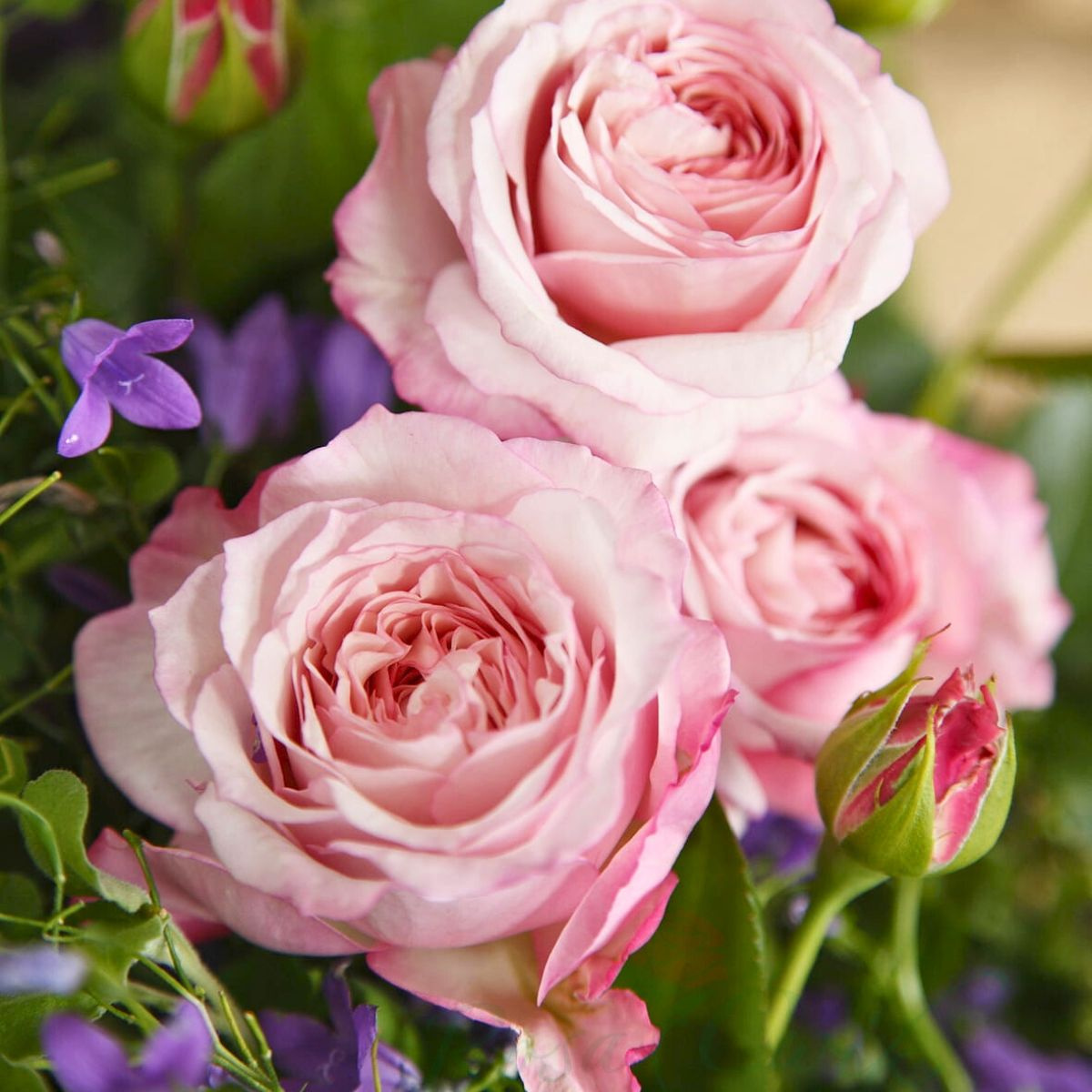 - duże, pełne kwiaty w pastelowych odcieniach różu i bieli