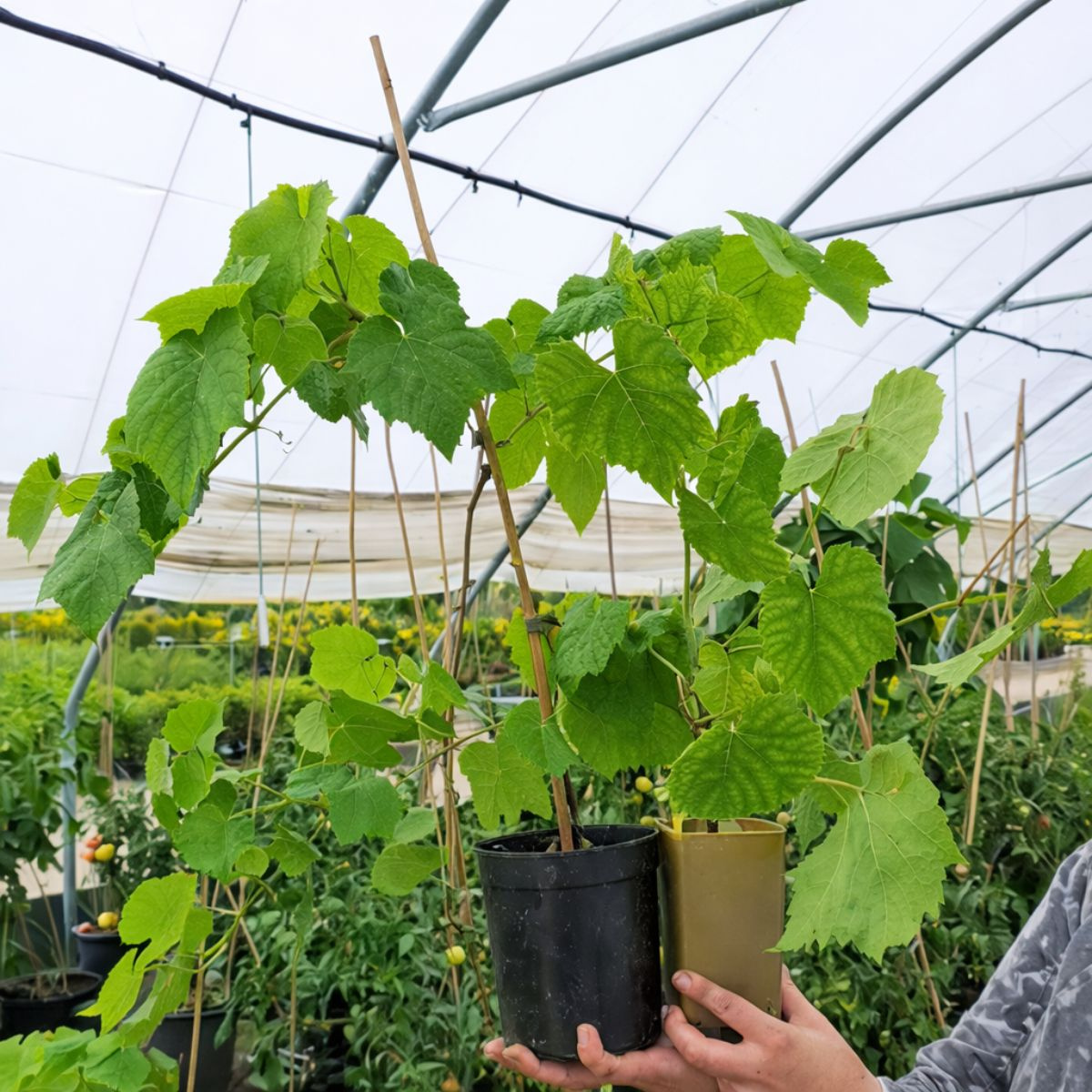 Winorośl Seyval Blanc (Vitis vinifera 'Seyval Blanc') to wszechstronna odmiana, która doskonale łączy piękno z funkcjonalnością. Pnący krzew owocowy, dorastający do 4–5 metrów, zachwyca smacznymi owocami i łatwością uprawy, co czyni go idealnym wyborem zarówno dla początkujących, jak i bardziej doświadczonych ogrodników. Seyval Blanc to doskonała opcja do ozdabiania pergoli, altanek czy podpór, tworząc zielone, dekoracyjne osłony. Jej winogrona są wszechstronne w zastosowaniu – świetnie nadają się do spożycia na surowo, produkcji soków, deserów czy aromatycznego wina. Dzięki wolnemu wzrostowi krzew łatwo kontrolować, co ułatwia jego pielęgnację. Odmiana ta łączy estetykę z praktycznymi plonami, dostarczając zdrowych i smacznych winogron. Sadzonki winorośli winogrona Seyval Blanc to niezawodny wybór, który wzbogaci Twój ogród o piękno i pyszne zbiory.